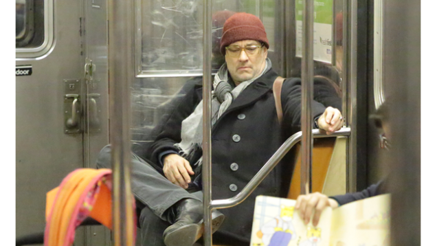 In this photograph, originally published by the London Evening Standard, Tom Hanks appears to be taking up a pair of seats on the subway. You know what? That's fine.