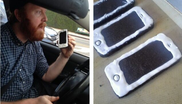 Stand-up comic and part-time gay bar cook Randy Liedtke has come up with a fool's foolproof way of pissing off a cop: Baking cookies that look like iPhones and then driving around with them pretending to talk.