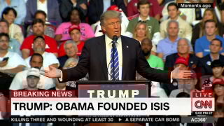 In an appearance on CNBC, Donald Trump reiterated his claim at a campaign rally in Florida on Wednesday that Barack Obama is the “founder of ISIS,” as was Hillary Clinton. “What?” Trump asked on Thursday morning. “Are people complaining that I said he was the founder of ISIS?”