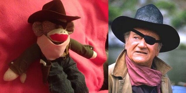 May, who makes and sells custom sock monkey dolls modeled after pop culture icons, says the brouhaha was over a two-inch toy pistol belonging to "Rooster Monkburn" — a cowboy sock monkey inspired by True Grit protagonist Rooster Cogburn (as played by John Wayne).