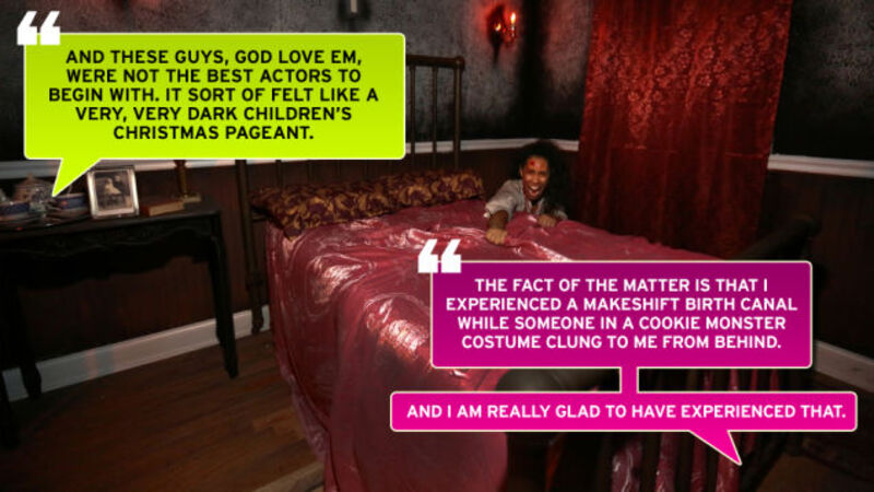 Caity: The disclaimer is delivered in a very fast, rote way that only serves to make it more terrifying: "If at any point you get too scared and want to leave, an actor will assist you. If you freeze up and can't move, an actor will assist you…”