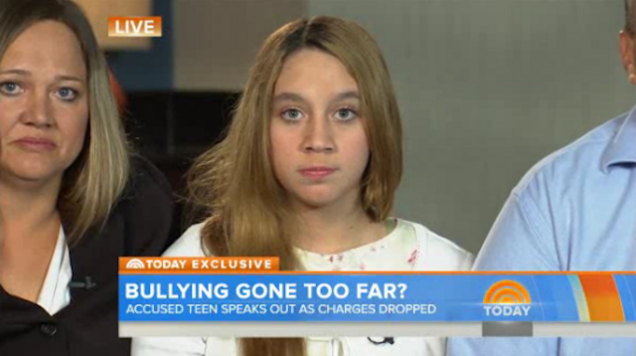 Two Florida girls, one 13 and one 14, have had felony charges dropped in a bullying case that sprang up following 12-year-old Rebecca Sedwick's suicide in September. In an interview with Today, 13-year-old Katelyn Roman expressed relief at the decision and said, "I do not feel l did anything wrong."