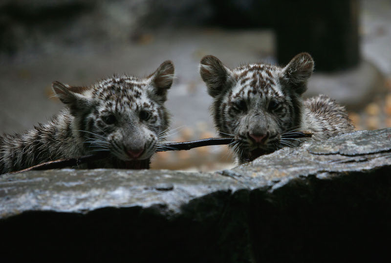 It’s worth mentioning that while most media reports refer to the animals as “rare,” white tigers are not a species, but rather a manmade hybrid of tigers, many of whom share the same few ancestors. The animals are often interbred by zoos and parks to keep their distinctive white coats, and are subject to severe genetic mutations and hereditary problems.