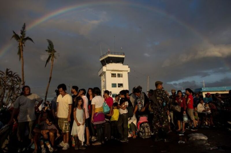 [Typhoon Haiyan survivors are still waiting for flights out of Tacloban Airport in the early Friday morning hours in Leyte, Philippines. With dead bodies left in the open air, and very little food, water, or shelter, health concerns are growing. Photo by Chris McGrath via Getty]