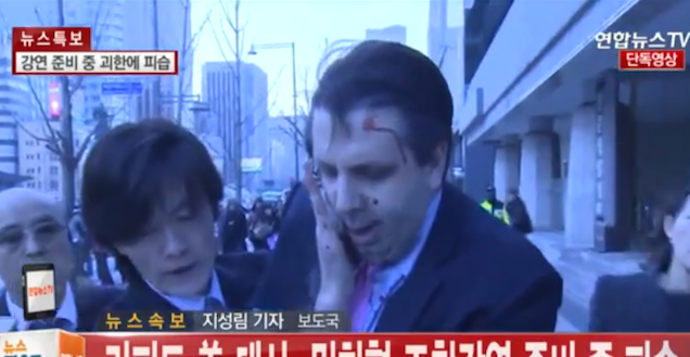 U.S. Ambassador to South Korea Mark Lippert was hospitalized today after he was attacked by a man with a razor blade in Seoul.