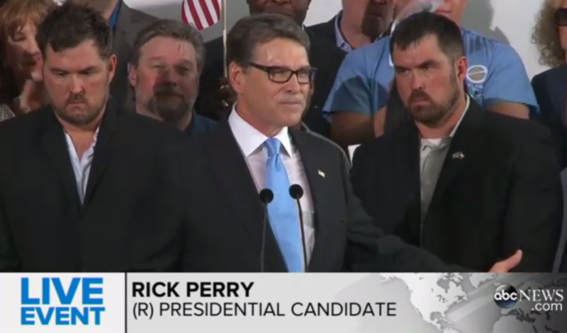 Rick Perry’s presidential campaign launched today on the premise that you don’t need to be able to count to three as long as you can push the red button. But amid his militaristic orgy of self-praise, dumb media people had a dumb media argument about the emo twins flanking Perry. Caitlyn Jenner was involved.