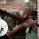 Alexey was the head of The Patriot Brigade, a militia unit fighting for the DPR. He allowed us to follow their three-car convoy back to base for the military funeral, charging along back roads to the gates of an old three-story CCCP rectangle of decay. In the parking lot, a column of a half-dozen men raised their guns, another dozen stood in formation. The casket was placed in the middle of the lot. Two shots were fired in salute. En masse, the unit surrounded the casket to pay final respects.