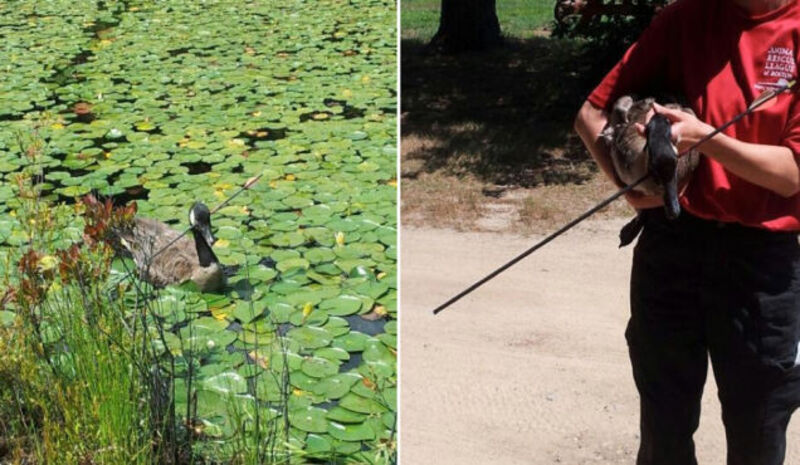 On July 28th, the Boston Globe reports, the Animal Rescue League of Boston received a call that a Canada goose with an arrow in his head had been spotted swimming (and almost certainly freaking out other geese) in a pond near Plymouth. He had been shot in the head by two boys playing with a bow and arrow. (According to the paper, as punishment, the boys were educated about state hunting regulations and “the dangers of bows and arrows," which would be worse than prison to a child.)