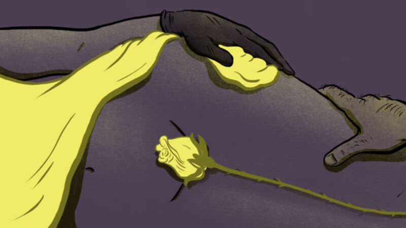 As memories, my sessions mostly exist as pictures, or silent films, of faces and bodies, the ways they responded to mine. When I saw Albert and let him in, a set of hairy knuckles were curled around the strap of his duffel bag, lifting some of its weight from his shoulder; his left hand bore miniature roses from his garden, the same pale yellow as my dress, their diagonally cut stems swaddled in damp paper towels and wrapped in tinfoil, droplets of dew clinging still to each petal despite the heat of the sun. I remember the way that he complained, as we sat on the bed, about the family of deer who noshed on his blueberries; the way I shimmered, with him, as I have only in my personal life; how that day and on two others, his eyes would hesitate and his smile would flicker and he'd interrupt my laughter to ask if I were really having fun.