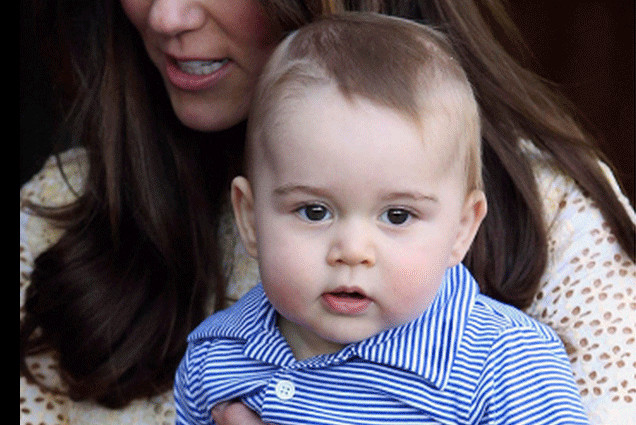 Fresh off his visit to Oceania, Prince George, King of Darkness, Baby of the World, Soup of the Day, has achieved a diplomat's greatest honor: a feature story about his springtime antics in the May 5 issue of Us Weekly. As Page Six noticed, the original Reuters photo used for the Us cover has been altered slightly, to transform George from a normal, whatever baby into a baby with stunning green eyes whose "joyful world" people might actually want to read about.
