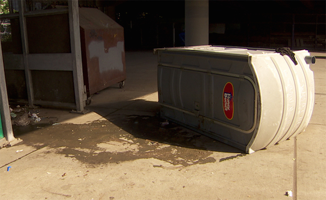 “[He] was flashing us over and over again, and we asked him multiple times and told him to stop and he wouldn’t,” a homeless woman told KATU. “Our friend thought it would be funny to get up and jump behind the port-a-potty and kick it.”