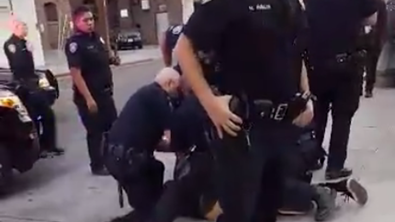 On Tuesday, a Facebook user in Stockton, California uploaded a disturbing viral video showing a large group of police officers violently forcing a 16-year-old student to the ground. The teen’s alleged offense? Jaywalking.