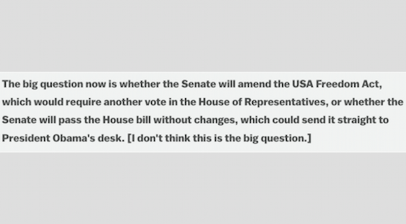 The explainer about the midnight expiration of portions of the Patriot Act reportedly contained at least three not-for-publication editor’s notes that, though harmless, are somewhat entertaining and helpful—a result some might even call a great improvement.