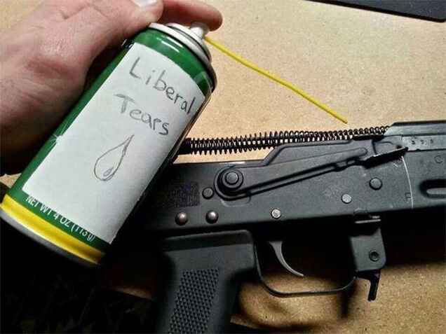 Stockman loves guns, as evinced by his campaign bumper sticker: "If babies had guns they wouldn't be aborted." So it isn't terribly surprising that he'd try to troll ideological foes with the photo above, posted to his Facebook and Twitter accounts. "The best gun lubricant around," he writes of a lube can labeled "Liberal Tears."