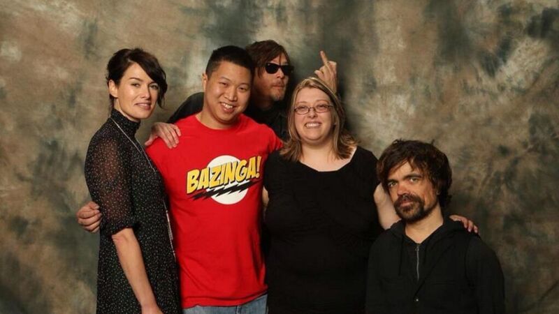 Not about to let some wayward baseball be the best photobomber of the day, The Walking Dead's resident rebel-with-a-crossbow Norman Reedus decided to drop by the Game of Thrones fan photo session at the Calgary Comic & Entertainment Expo and deliver a very necessary headshot to an otherwise quotidian snap of Peter Dinklage and Lena Headey with a pair of Thronies.
