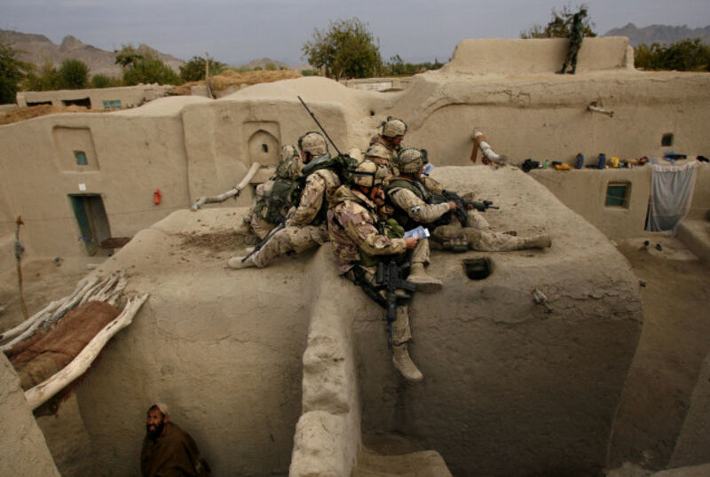 [AP Photo: NATO Coalition troops in search of Taliban fighters take up a position in Kandahar province in November 2006.]