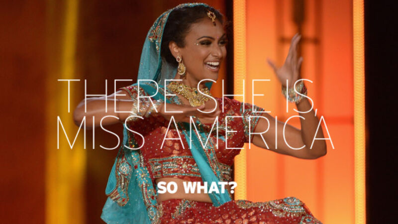 I understand why it's a big fucking deal that an Indian-American woman won Miss America for the first time. It's just as important as when Rima Faikh became the first Lebanese-American, and first Muslim, to win Miss USA in 2010. I find beauty pageants moronic (the title is a meaningless honor, 35 percent of which can be attributed to how good she looks in different articles of clothing and zero percent to her ability to grasp a basic concept of percentages), but I'm aware that these victories can shake up and change previous models of "All-American." I'm glad that we're moving toward a future where beauty queens of color are normal and not exceptional. It's just that every time an Indian achieves something big—a beauty pageant, a huge spelling bee, majority ownership in a major sports franchise—I feel like my excitement for my brown brethren is less actual excitement, and more just something I'm supposed to say.