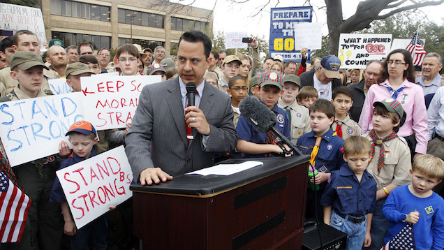 Jonathan Saenz, an evil man known for stuff like claiming same-sex marriage leads to polygamy and "standing strong" with the Boy Scouts of America against admitting gay people, divorced his wife in 2011. She left him, it turns out, because she was in love with a woman.