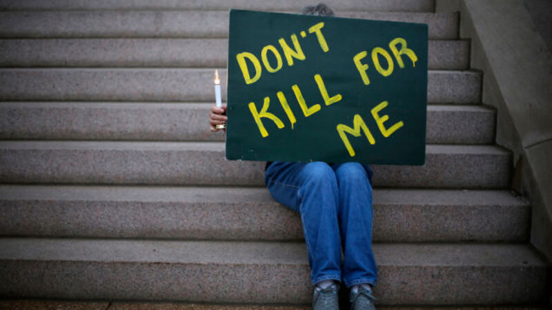 [Photo via AP, of a protest against Bucklew's scheduled execution yesterday.]