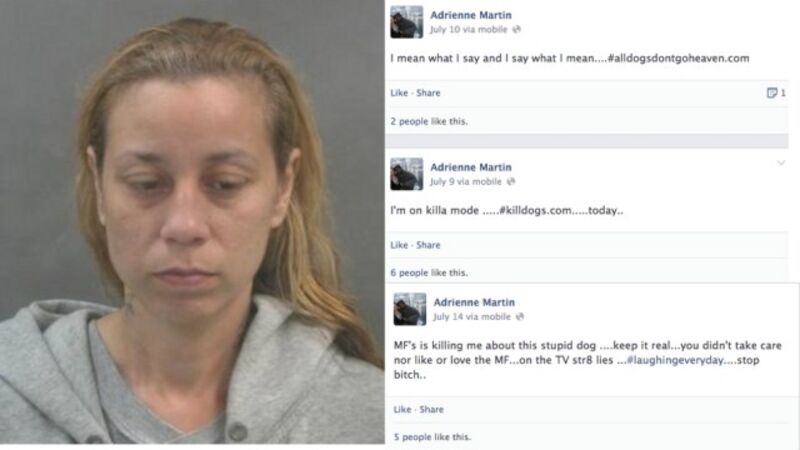 The St. Louis Animal Cruelty Task Force, founded by Mayor Francis Slay, was initially unsure who was responsible for the dog's injuries, but was later able to attribute the abuse to Adrienne Martin, 35, thanks to a series of incriminating messages she posted on Facebook.
