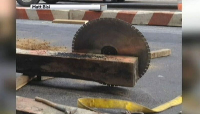 Sean Kuilan was also on the street when the blade came slicing through. "I hear the blade and see the blade literally coming off the machine," he said. "It was huge. It looked like it was from a horror flick. I couldn't believe it." He also saw the woman get knocked down by the flying buzzsaw.