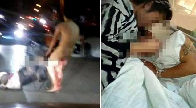 "The two subsequently clashed outside the facility, with a naked and bleeding Fan repeatedly beating his wife, until onlookers called the police," according to an AFP story.