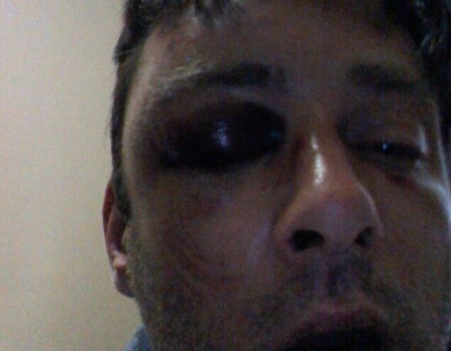 The visibly bruised Contarino wrote on his Facebook page this morning: