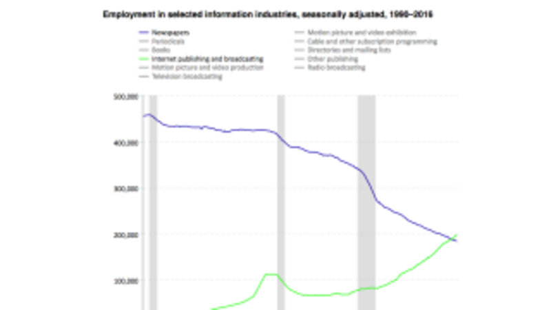 From the Bureau of Labor Statistics, via Nieman Lab: as of March 2016, there were 197,800 Americans working in Internet publishing and broadcasting, and only 183,200 working for newspapers.