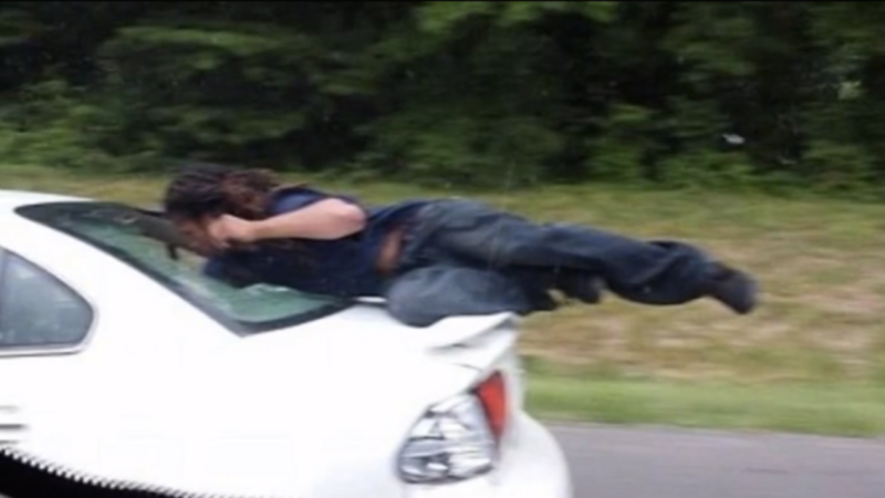 Recently, a man took a leisurely ride on North Carolina's Interstate 77, not in his car, but outside someone else's.