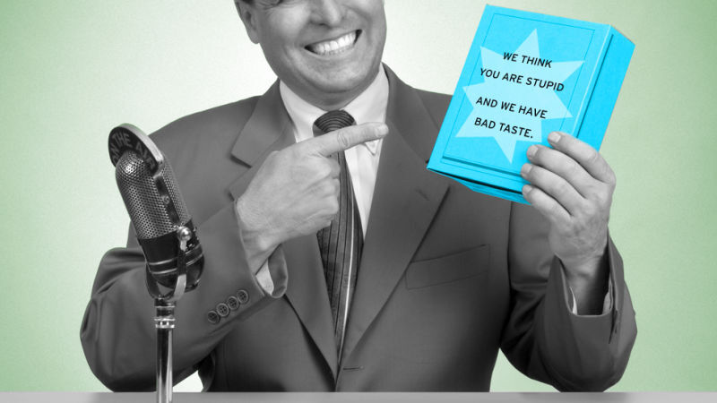 The ad that doesn't feel like an ad—this is the grail right now, for everyone, Gawker Media very much included. So we get the occasional humiliating advertorial post, with straight-up garbage dressed to resemble actual content, through which the advertiser (or the publication) tells the reader, "We think you are stupid, and we have bad taste." And the writers and the editors complain about them, and the bosses point out that the posts include "sponsored" in a little box where the subject tag usually goes, and life goes on, as it does at the New Yorker, when it runs those grim, witless cartoons styled to resemble New Yorker cartoons but with captions selling vodka or whatever they sell. No one who gets paid for this sort of thing will ever admit that it's a losing proposition, running an inferior commercial version of your own product. The readers neither trust it nor enjoy it.
