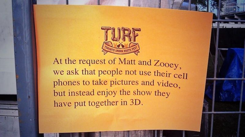 An ostensibly polite request found posted outside the She & Him concert at last week's Toronto Urban Roots Fest asking attendees not to snap photos or shoot video of the duo was actually pretty aggressive, as some fans who flouted the ban quickly discovered.